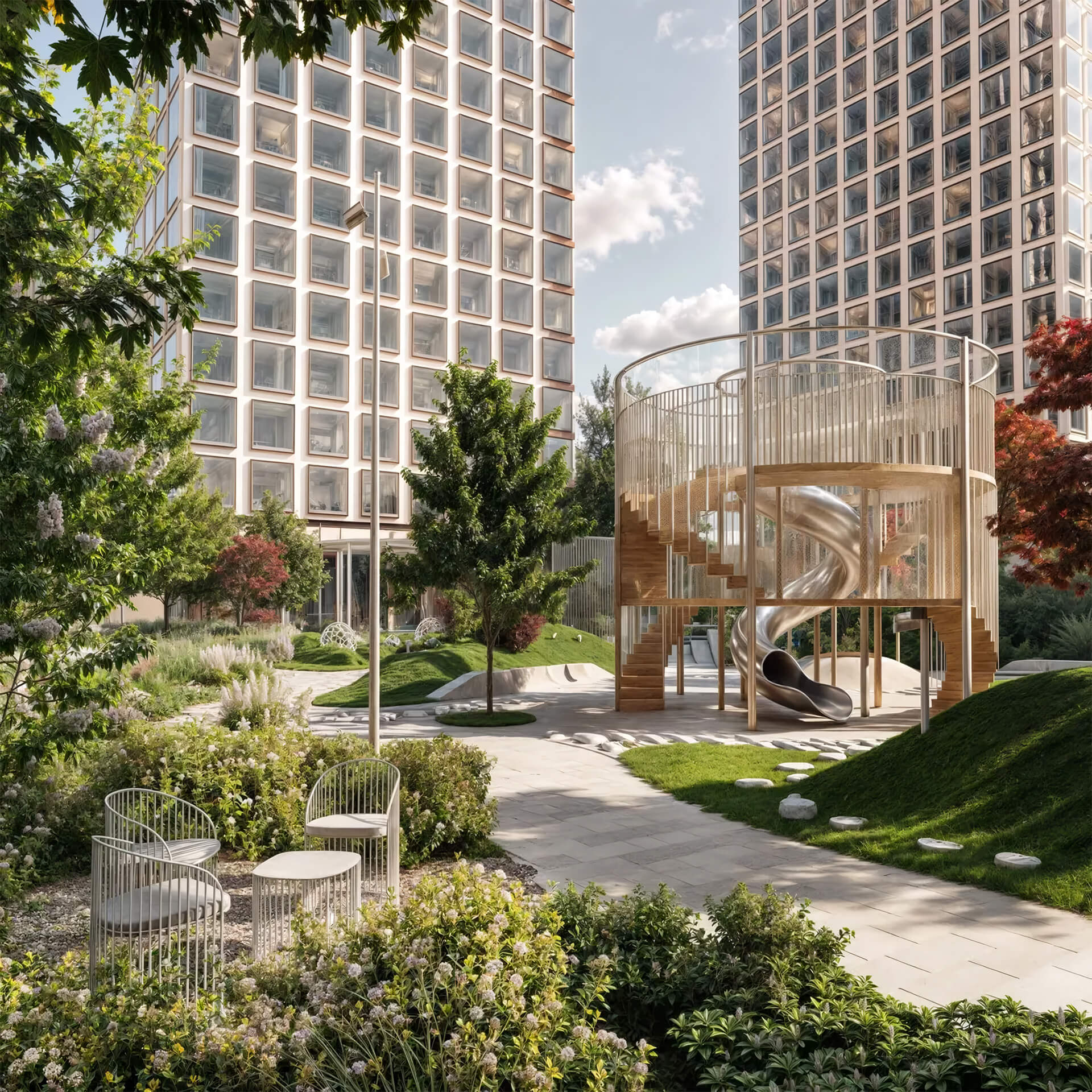 Территория комплекса SEZAR FUTURE — это благоустроенный двор в формате уникального парка. Созданная по оригинальной концепции, она обеспечит полную безопасность и спокойствие для всех жителей. Пространства для прогулок, зоны для отдыха и зеленые аллеи идеально подойдут для расслабления и общения на свежем воздухе. Акцент на экологичность и комфорт делает двор настоящим оазисом в центре мегаполиса.